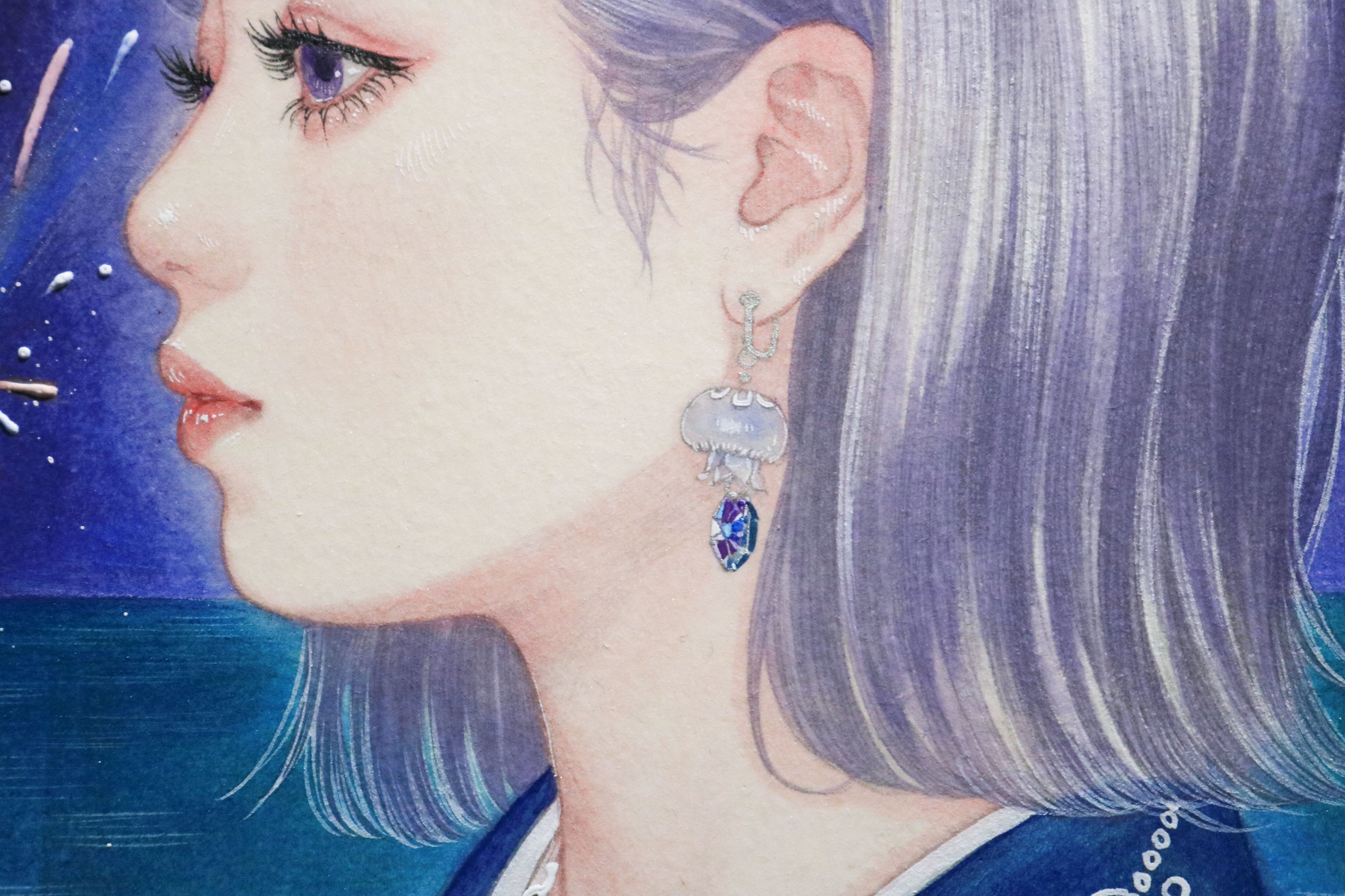 耳元には、藍水のアクセサリー「夜靄ミズクラゲ」をつけています。