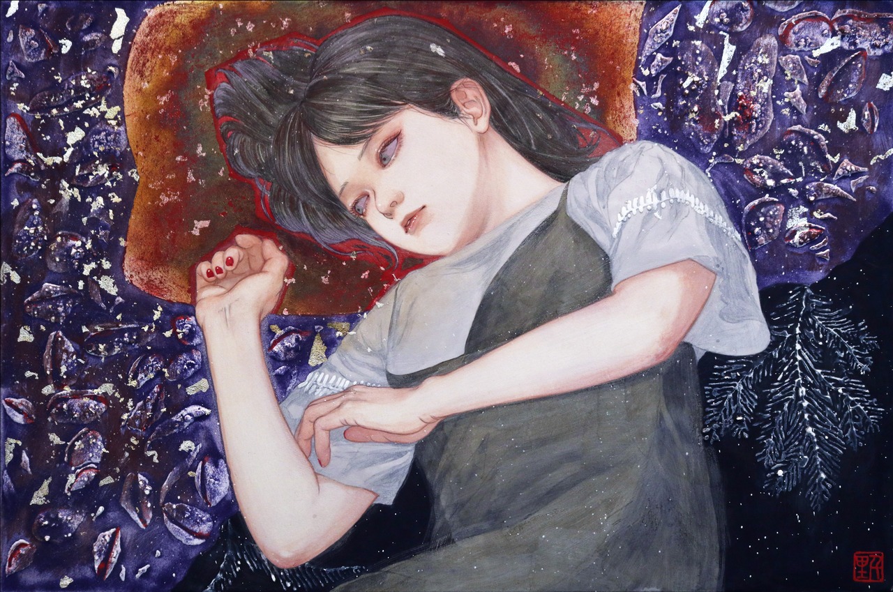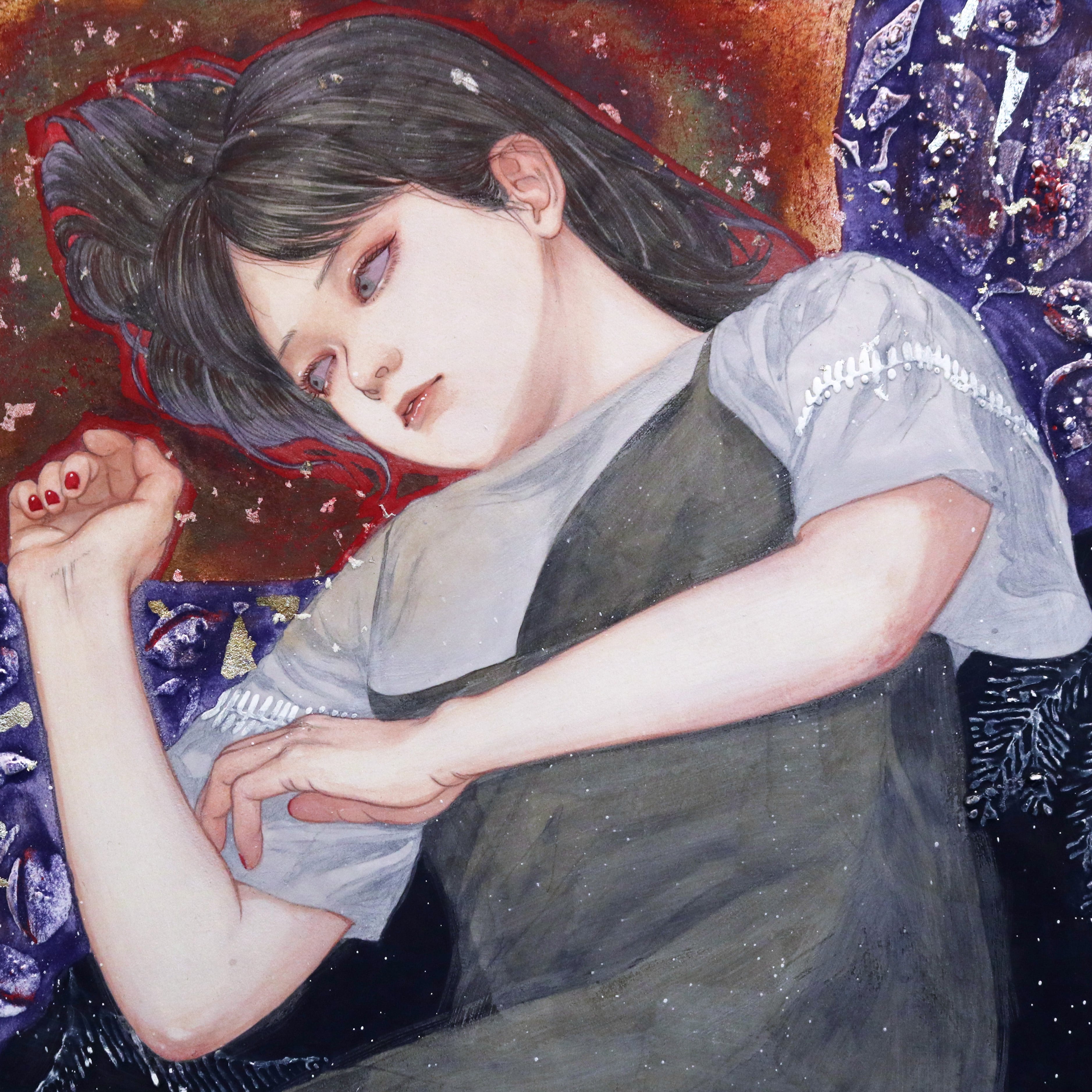 深海生物に囲まれて眠る夢をモチーフに描きました。