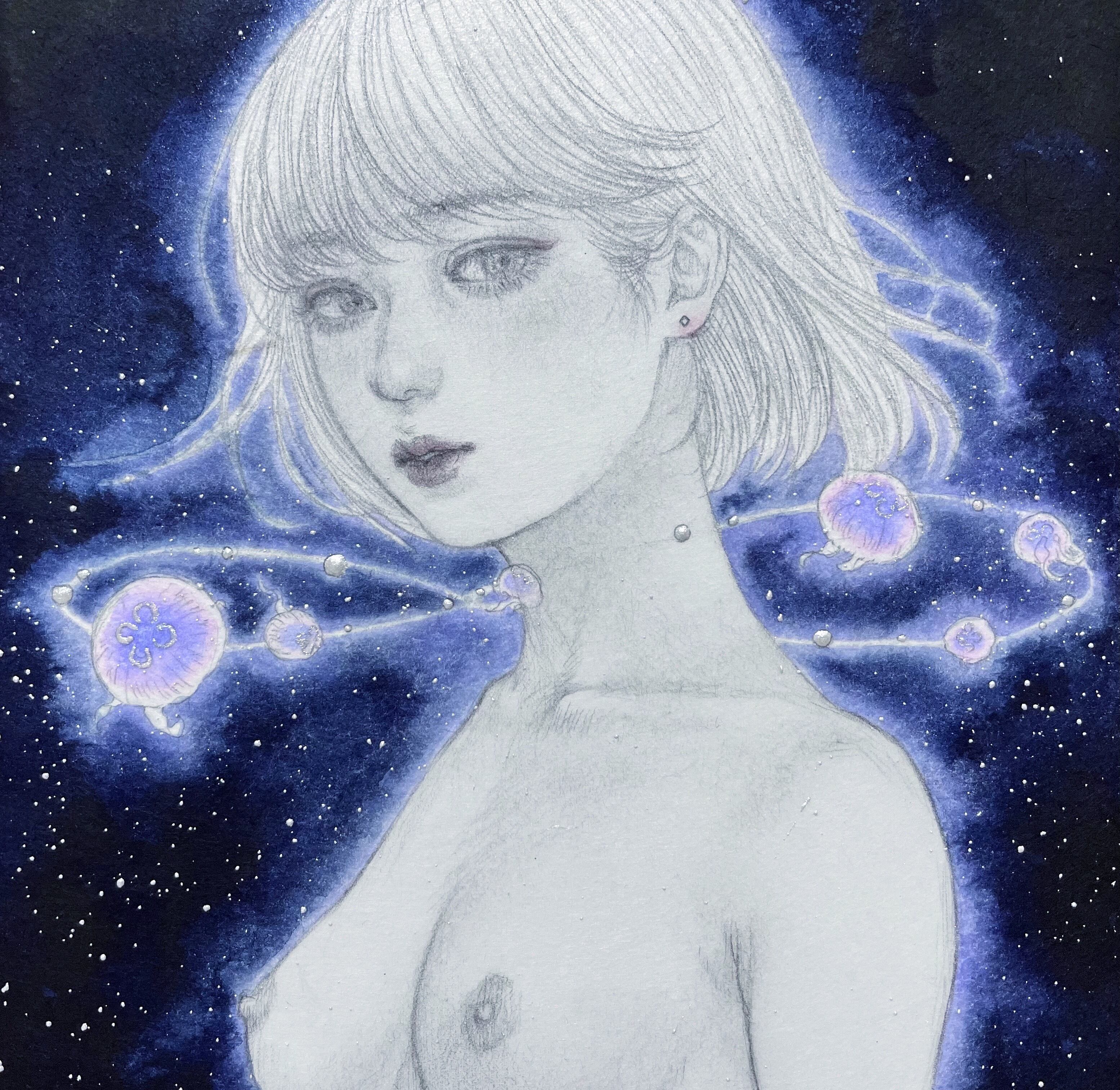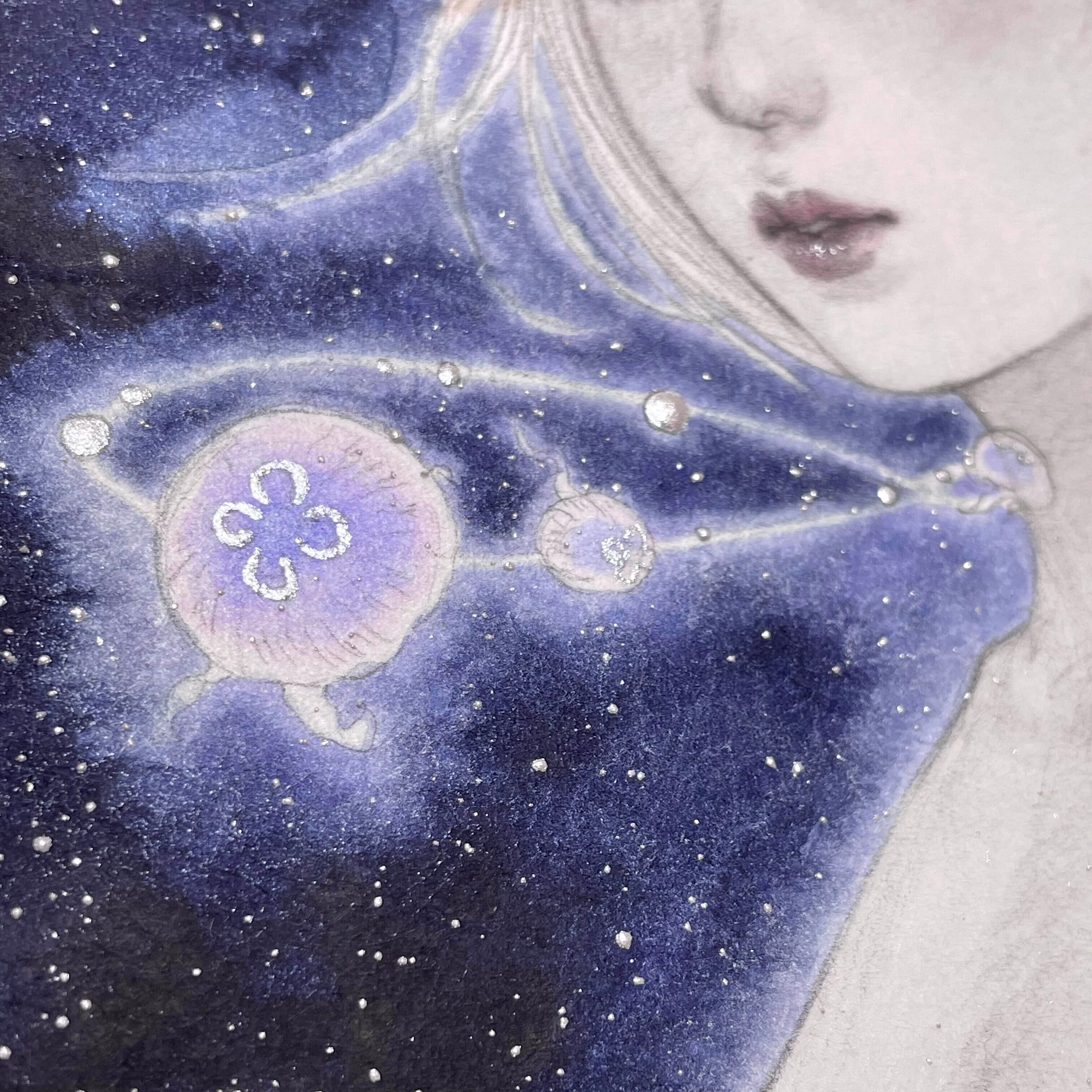 宇宙に漂うようなクラゲと女性の、幻想的な世界をお楽しみいただけます。
