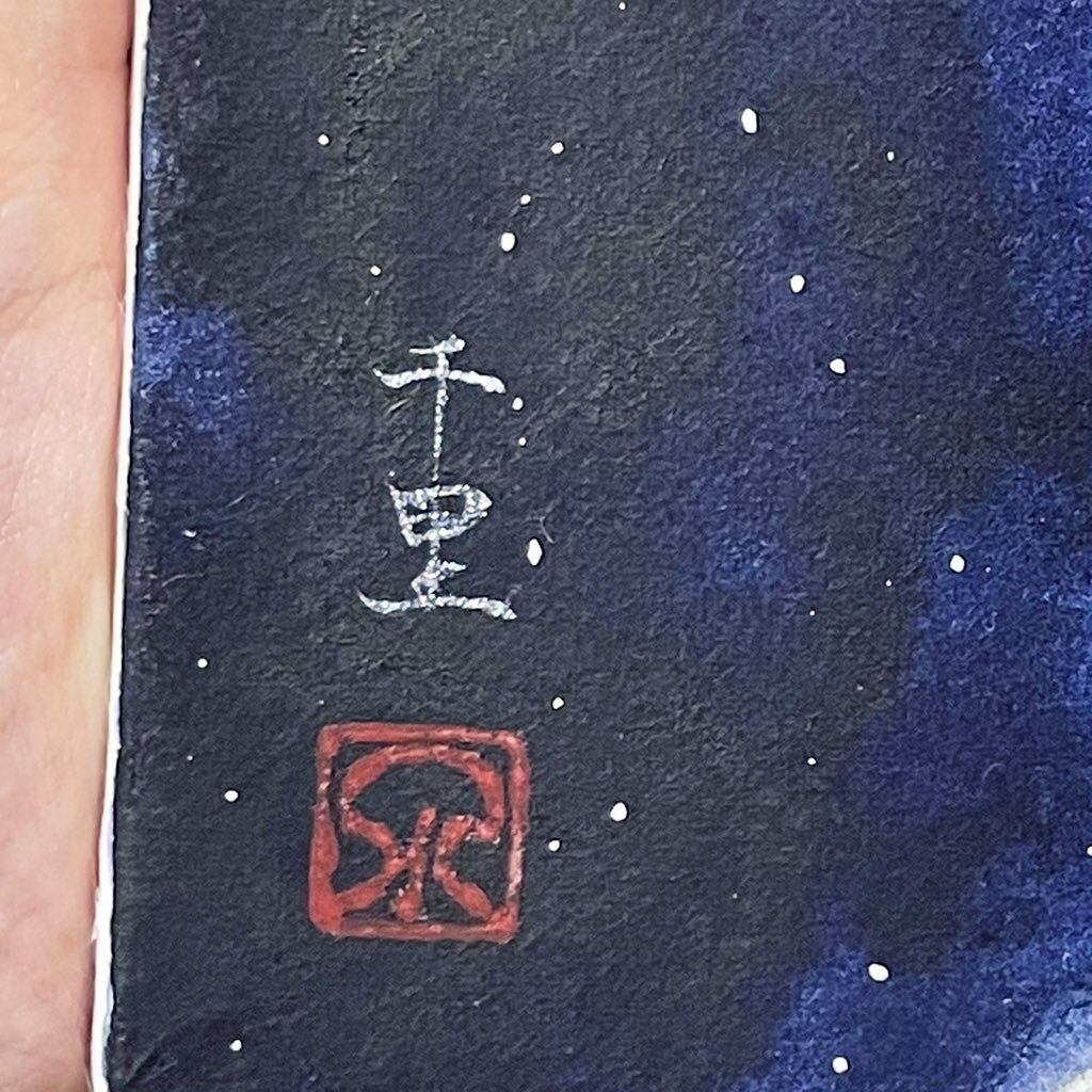 きらきらと光る光の粒は、銀の顔彩を用いて表現しています。